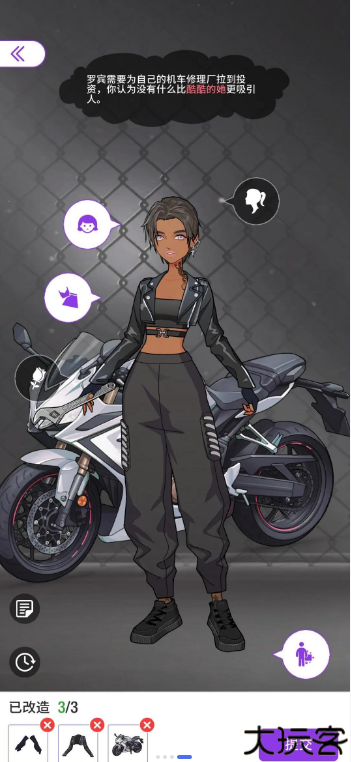 4、罗宾的机车修理厂需要投资,她认为没有什么比酷酷的她更能吸引投资了。需要帮助她展示自己的魅力,吸引投资者的注意。