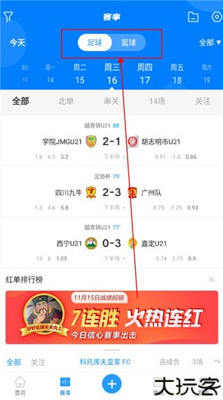 1、打开APP主页,选择赛事模块查看最新赛况。
