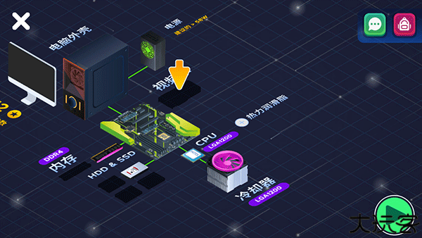 1、游戏内容聚焦于电脑制造业务,其中包含配件研发及系统升级。