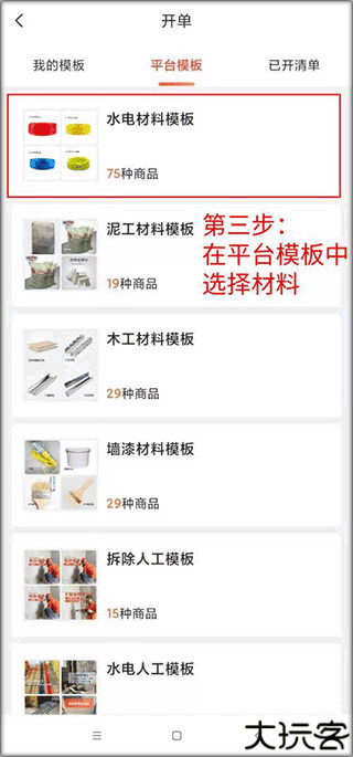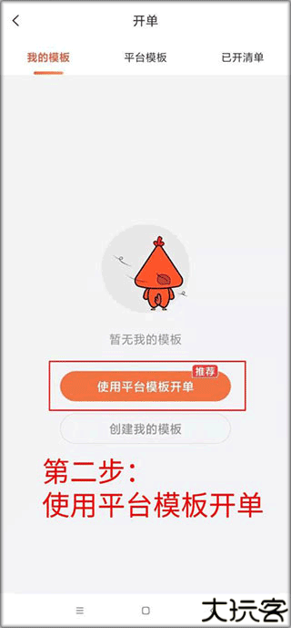 2、进入开单界面后,点击“使用平台模板开单”按键。