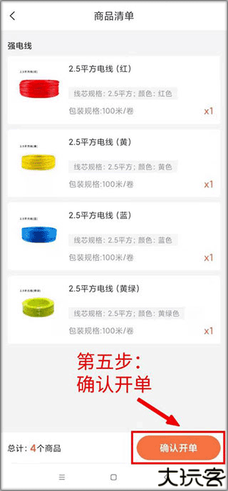 5、检查商品清单无误后,点击“确认开单”的按键。