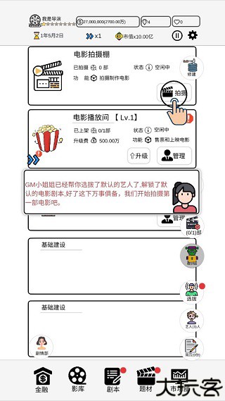 4、玩家能建立自己的电影公司,招募以及培训演员与员工,扩大事业版图。