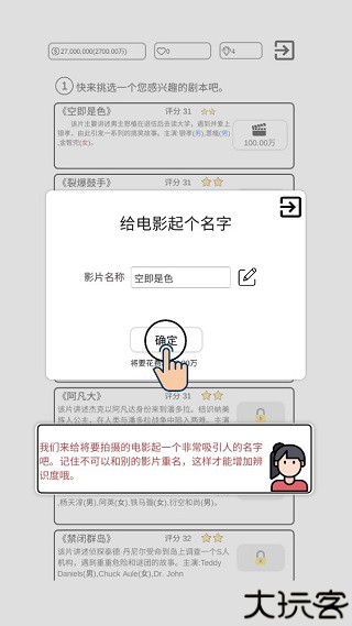 6、在拍摄的过程中,身为导演的玩家需要为新电影选择一个故事剧情,如下图