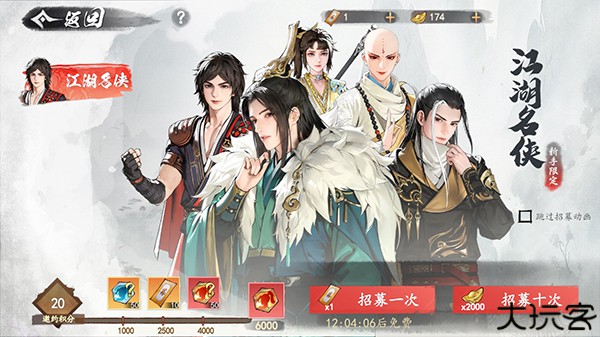 3、通过招募券抽取解锁新侠客,扩展你的战力阵容。