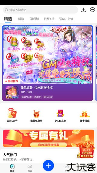 首页展示大量精选内容,轻松找到感兴趣的热门游戏。