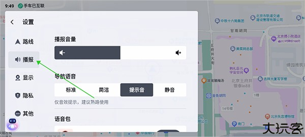 2、打开新窗口中,点击“播报”进行语音包的设置。