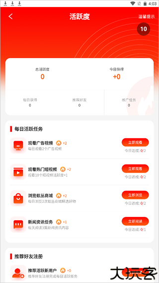 3、实名认证后,用户可以用系统送的10券点在任务大厅兑换旅游任务,再点击视频去观看,看5个视频完成任务获得0.4券点。