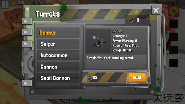 1、炮塔工事:点击进入就可以购买各种炮塔进行防御。