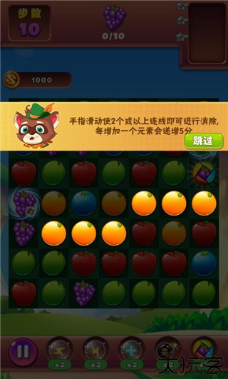 4、手指滑动2个或是以上的水果进行连线即可消除,每增加一个水果会额外增加5分。