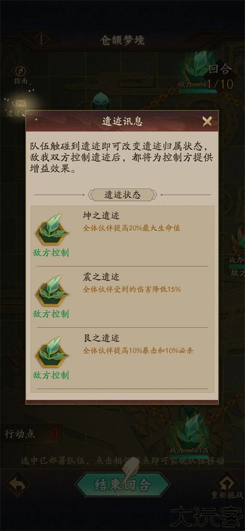 6、回合耗尽、己方阵亡或大本营失守会直接挑战失败。