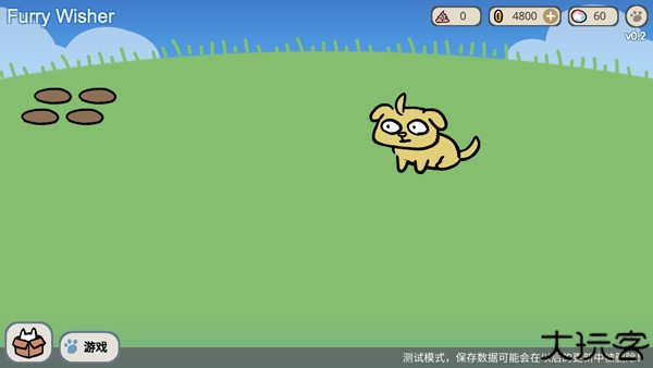 1、打开宠物愿望模拟器最新版,首先点击左下角【游戏】按钮;