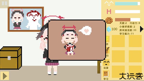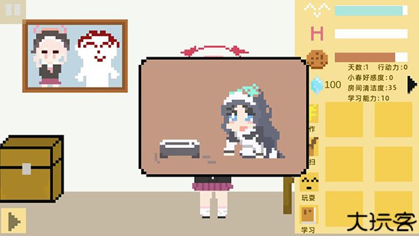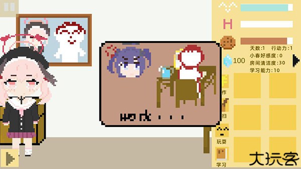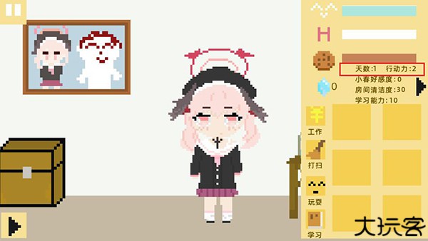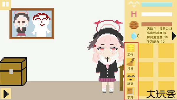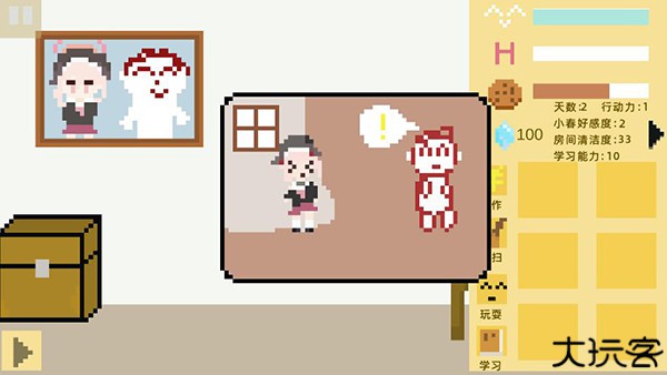 4、打扫卫生可以提高房间清洁度,一个好的环境可以防止小春心情值快速降低哦