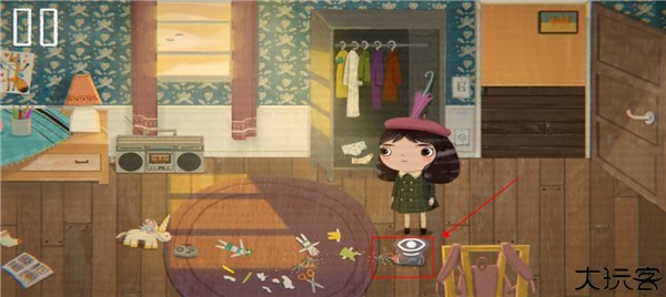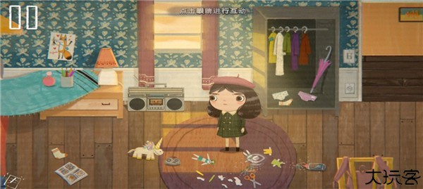 2、来到物品旁边后点击眼睛可以和物品进行互动;