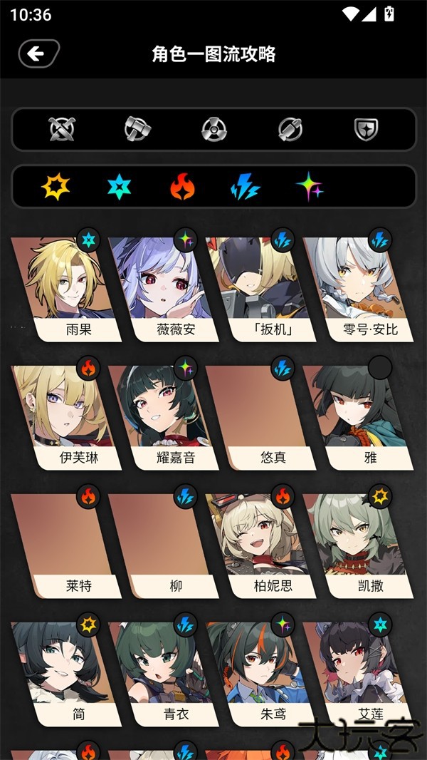 3、然后我们还可以通过角色攻略功能来查看游戏里每一个角色的使用攻略。