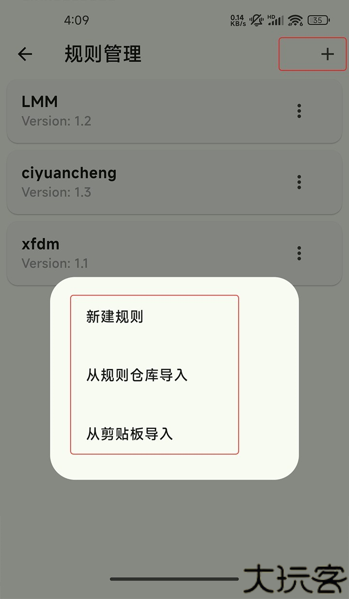 2、点击“+”即可添加规则,支持自行新建规则或是导入