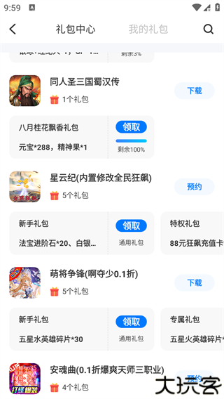 4、然后可以在此页面选择游戏的礼包,同时也能点击右上角搜索处;