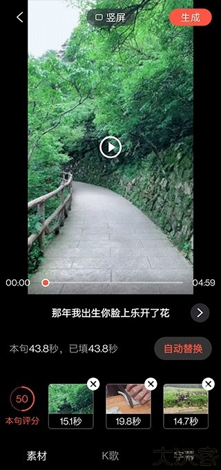 5、添加素材,软件内为大家提供了很多好看的素材,添加之后选择生成;