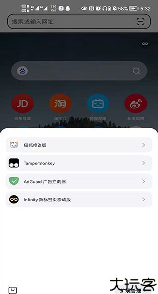 4、在此处,你可以查看到所安装的扩展,如猫爪、油猴、广告拦截等等。