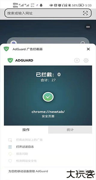 5、随即打开adguard广告拦截器,可以轻松拦截网页中的广告。