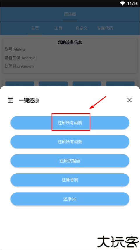 4、如果要还原画质,只需点击下方还原按钮,选择还原画质。
