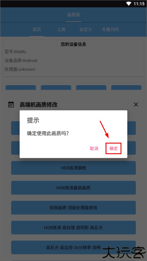 3、软件会提示是否使用此画质,点击确认即可;
