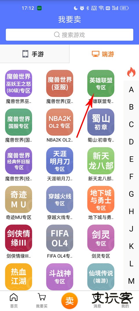 3、你需要卖的是什么游戏的账号就选择哪个专区进入;