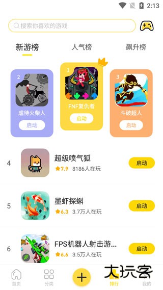6、当你找到自己喜欢的游戏之后,无需下载只要点击启动即可免费畅玩。