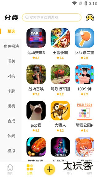 2、点击分类列表,可以根据自己游戏的类型进行搜索;
