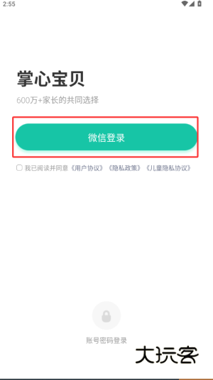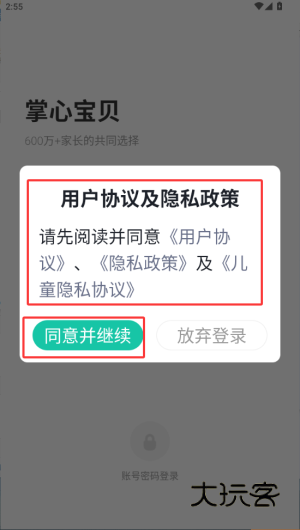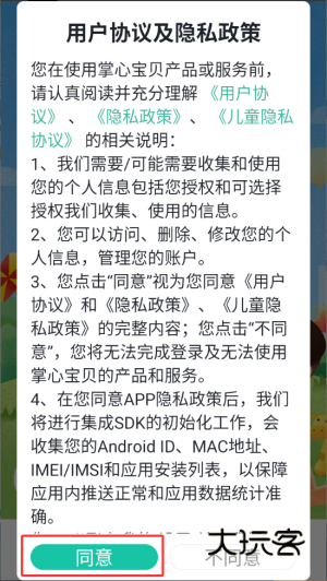 1、启动掌心宝贝应用,阅读用户协议与隐私政策后点选同意。