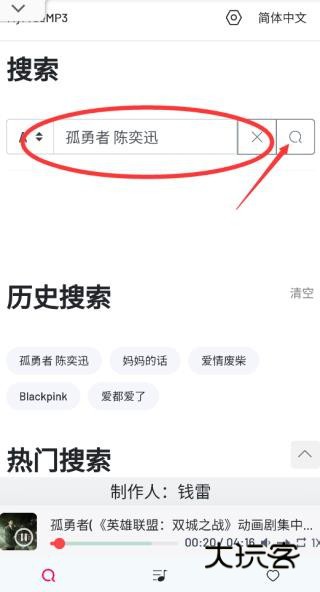 1、先在本站下载安装好音乐,然后进入到主页面在搜索框内找到自己想要下载的音乐。