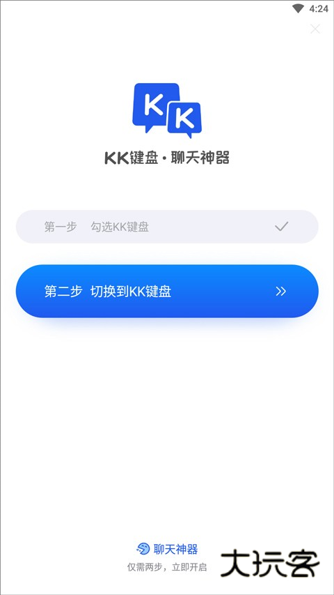 在手机上运行软件,选择首页里的“勾选KK键盘”按钮,然后打开设置功能里启用键盘;