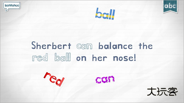 5、接下来, 各种萌系小怪物蜂拥而至,搬着刚刚拼好的单词跟含有这个单词的句子,让你的孩子跟你一起用填空的形式来完成。