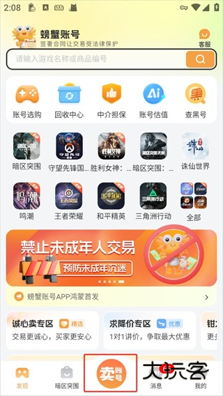 螃蟹账号交易平台是一款线上游戏账号交易平台,有着海量的游戏账号选择哦,丰富的游戏选择,类型种类也非常广泛,游戏账号选择性也非常多,划分的也非常详细哦,轻松快速地寻找到自己满意的账号,进行交易哦,平台全程安全交易守护哦,放心交易并购买到账号哦,以及还可以寻找中介作为担保人哦,并为整个交易提供安全保障哦,更多好用工具等你探索。
