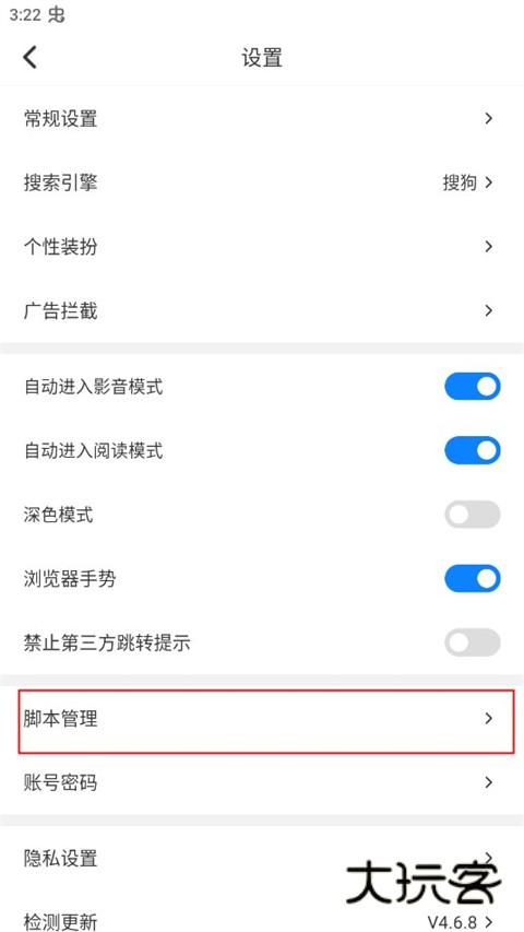 2、点击右上角的设置按钮,找到并点击【脚本管理】;