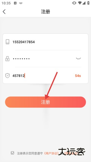 3、输入验证码,点击【注册】按钮,完成账号注册。