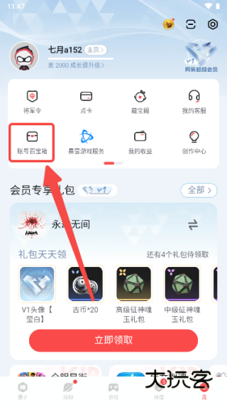 2、在我的板块中找到【账号百宝箱】,点击进入;