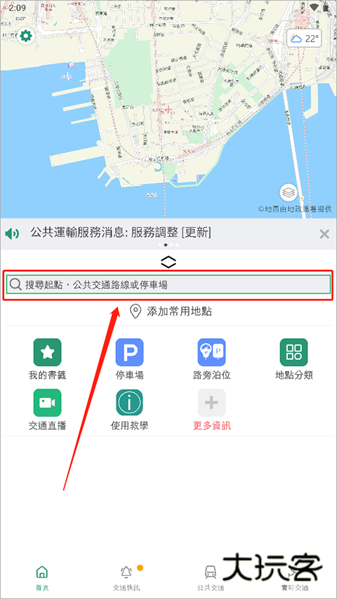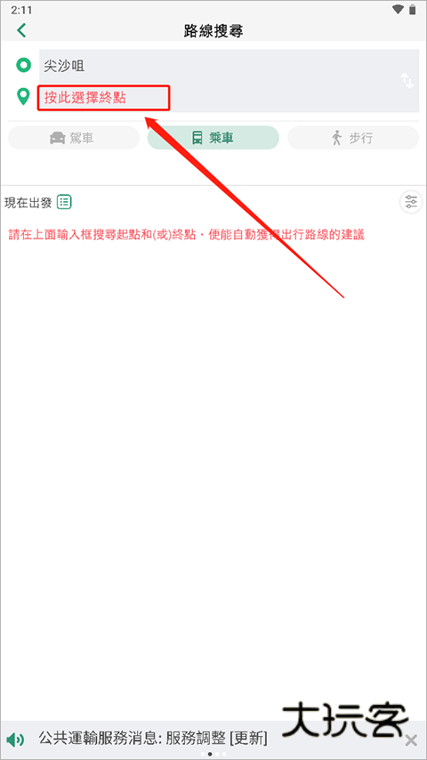 1. 在地图上搜寻个别路线、特别服务路线及附近路线