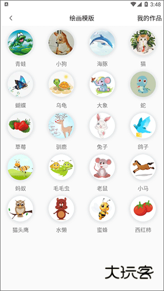 2、如“临摹”功能,这里拥有许多绘画模板,如青蛙、小狗、海豚等等,我们可以选择一个绘画模板;