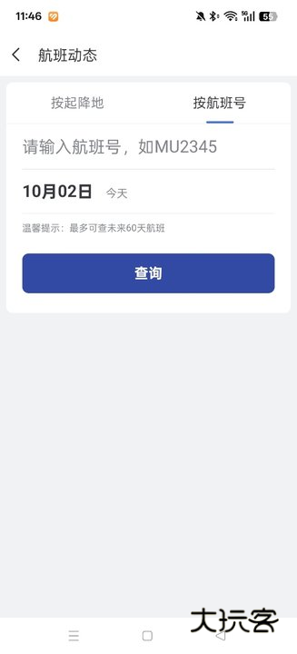 2、按起降地、航班号的方式查询航班飞行的动态详情。