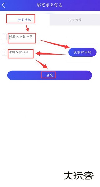 3、在跳转到的账号绑定页面,输入手机号,获取验证码即可完成账号注册与绑定。