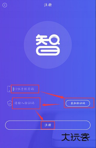 2、输入手机号-获取验证码-输入验证码-点击注册按钮,即可完成注册。