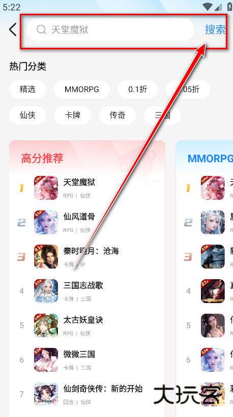 2.输入关键字,点击搜索,就可以找到自己想玩的游戏。