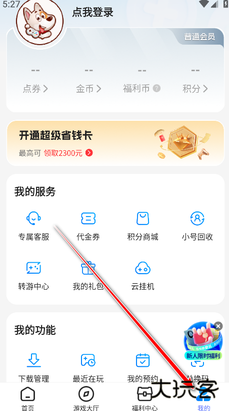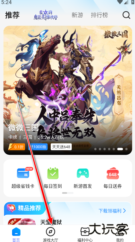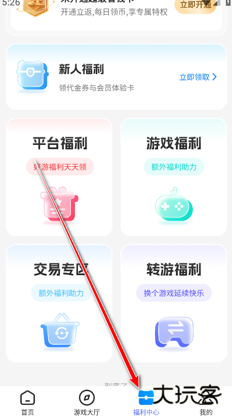 5.点击下方的福利中心,就可以看到各种新人福利、游戏福利等等板块内容。