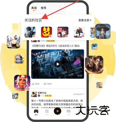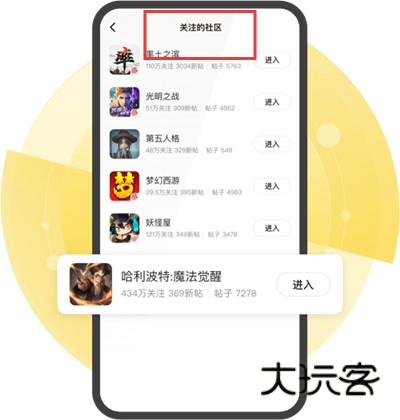 1、打开游戏社区,在【关注的社区】页面查看关注的游戏社区列表。