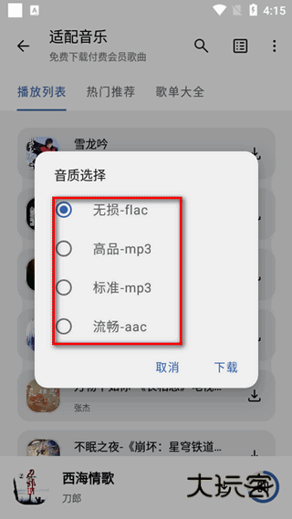 还支持下载,多种音质选择下载需求。