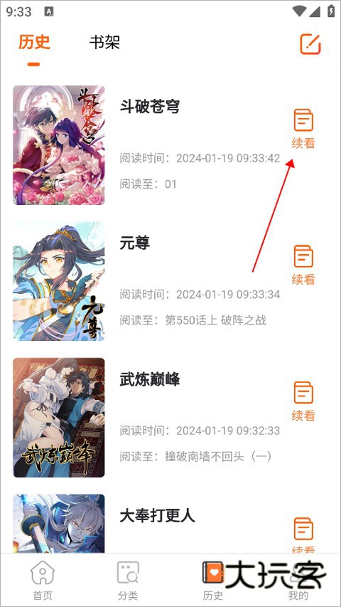 2、然后点击续看