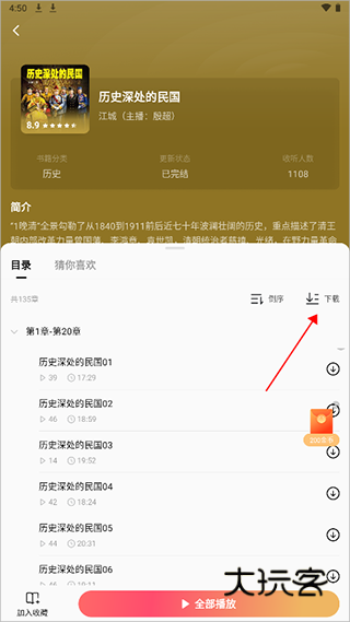 目前应用中的视频资源无法下载,但是听书资源和小说资源已开放了下载渠道,用户可以进入这些页面中选择需要下载的资源点击;