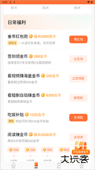 4、每天看剧达到一定时间可以获得金币,累积到一定数额就能体现,新人朋友还有七天签到福利;