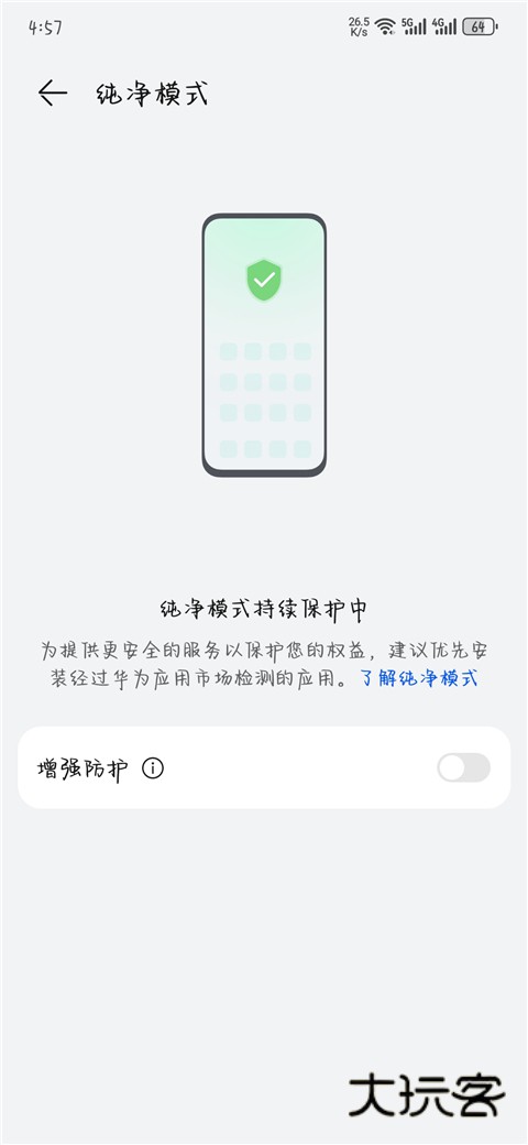 1、进入华为手机设置中心,搜索纯净模式或者在系统或者更新选项中;
