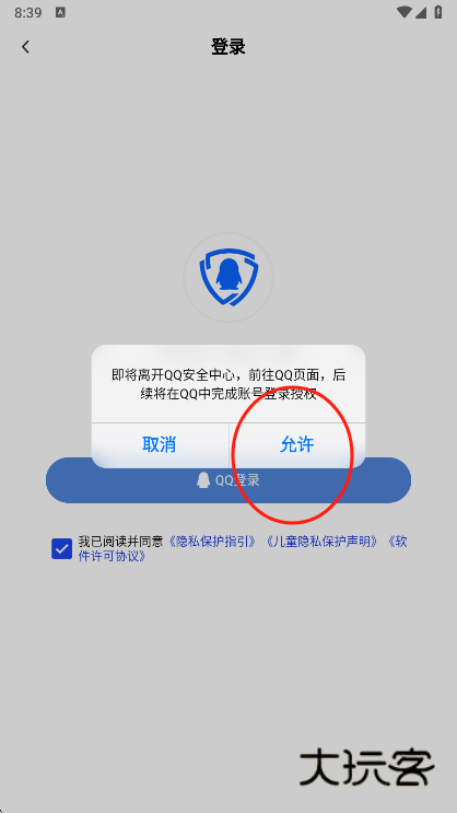 第二步:点击蓝色按钮“QQ登录”,进行登录,再点击允许